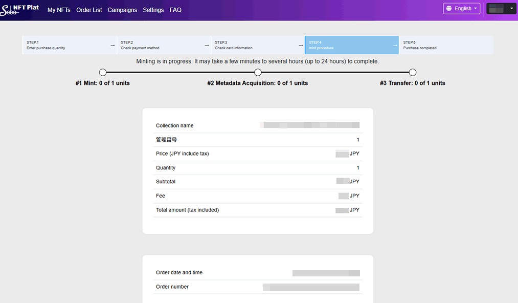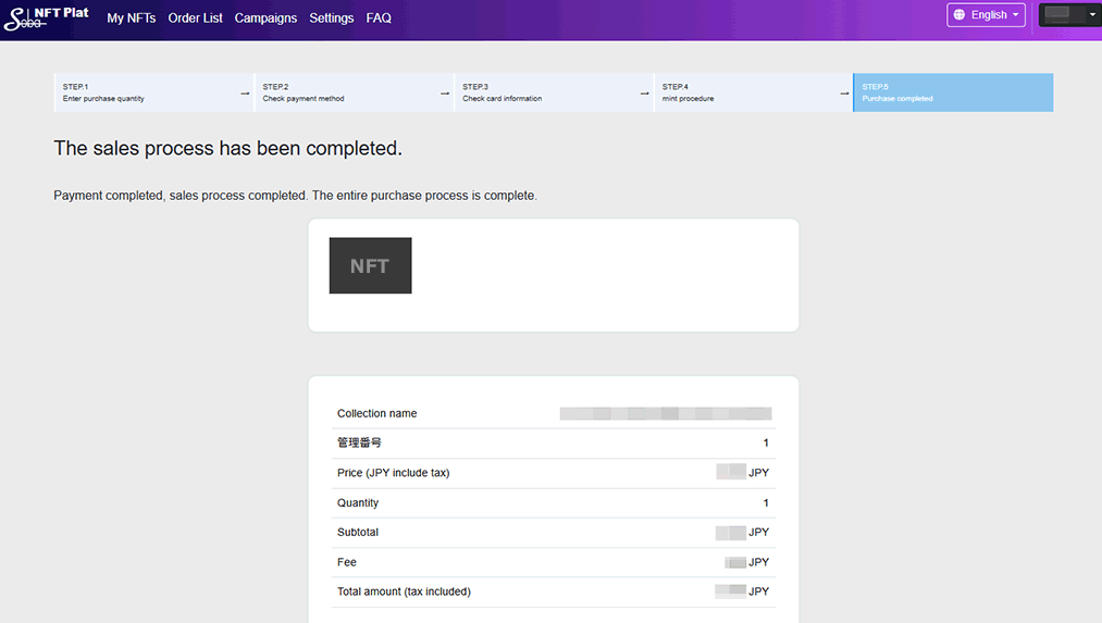 ※You will be redirected to the NFT payment service "SOBA NFT Plat"