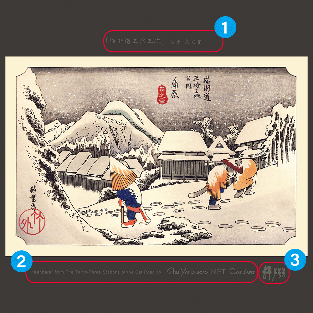| Title | “Kanbara” from The Thirty-Three Stations of the Cat Road by Shu Yamamoto NFT Cat Art |